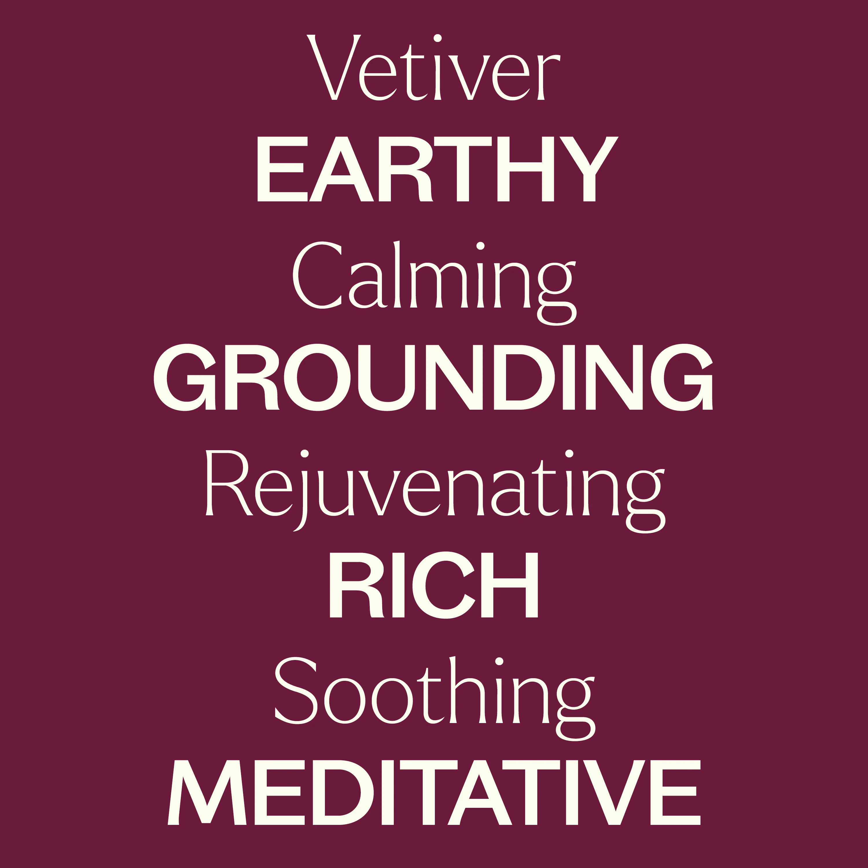 Bergamot, Clary Sage, Cypress, Frankincense Serrata, Helichrysum Italicum, Lavender, Lemon, Marjoram Sweet, Myrrh, Patchouli, Black Pepper, Sandalwood Australian.