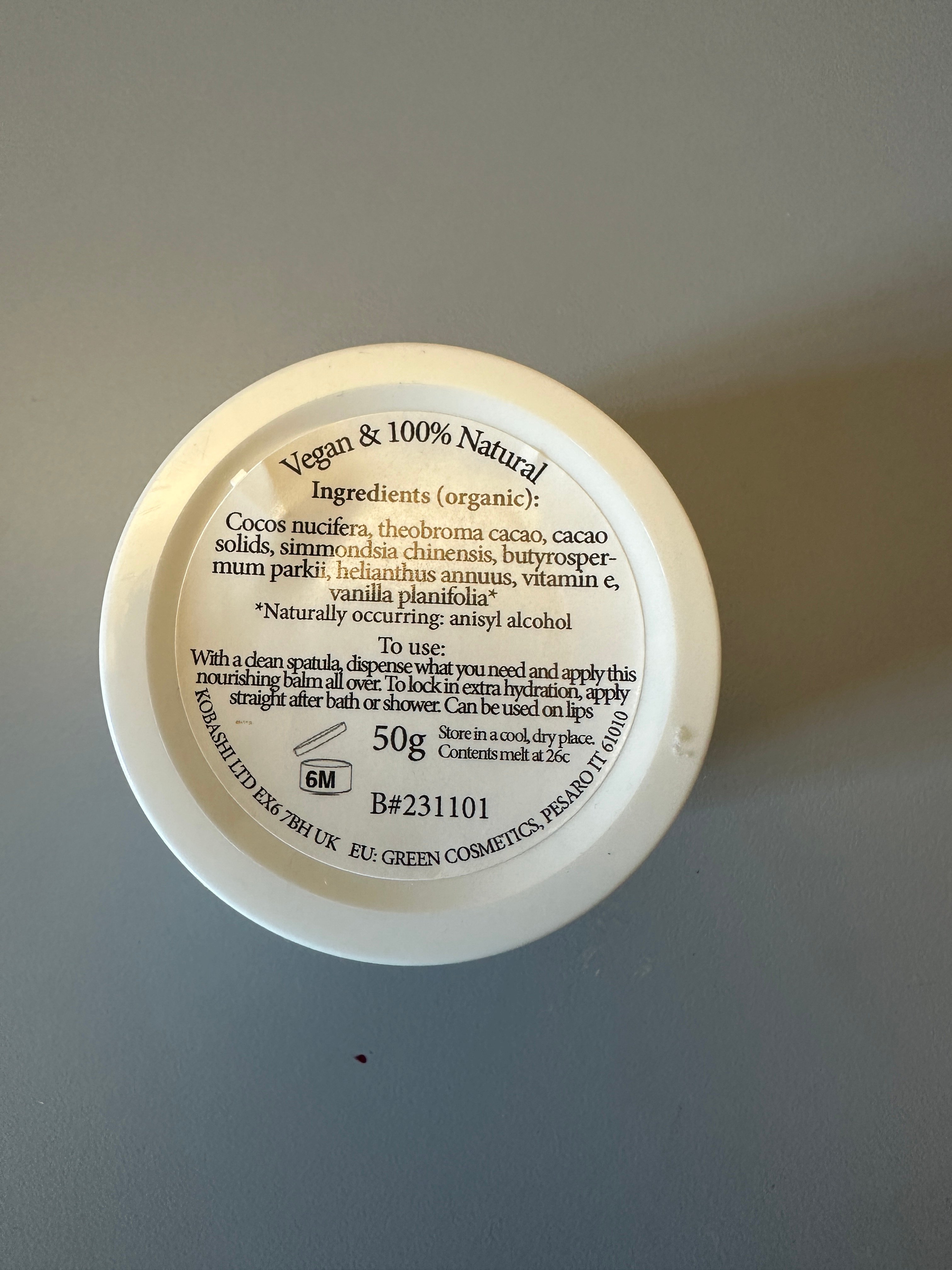 Real, natural chocolate, vanilla & coconut aroma. An indulgent blend of organic oils to enrich and nourish the skin. Contains only 100% naturally active ingredients. No preservatives.